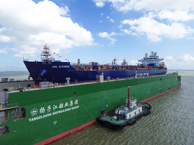 11月14日,我集团扬子三井造船为新加坡船东建造的第五艘新一代绿色环保型50000DWT MR油轮“JAL KAVERI”轮交付离厂,开启首航。