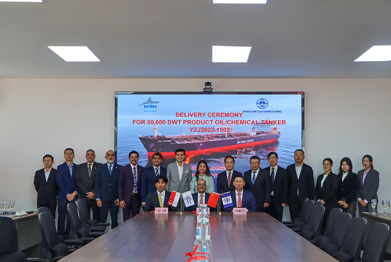 On 11 November, YAMIC held a grand naming ceremony for the vessel. The godmother, Ms. Puja Bothra, the naming sponsor, Mr. Anant Chand Bothra, Mr. VC Bothra, Managing Director of JALDHI, Mr Dimitrios Chalas, Register Foreign Shipowenrs Team Manager, Mr. Song Shuming, Deputy General Manager of YZJ Group and CEO of YAMIC, as well as representatives from all cooperation parties and employees, attended the naming ceremony.