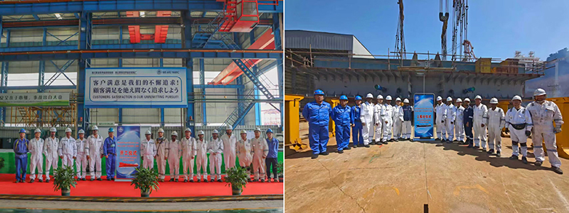 本船はShreya Karnati女史により「JAL DHVANI」号と命名され、Upasana Bothra女史によって支鋼切断による儀礼が行われました。本船は、乗組員全員に安全と幸福を、船主様には成功と富·ロイド船級社とYAMICに栄誉をもたらすことを心から祈っております。