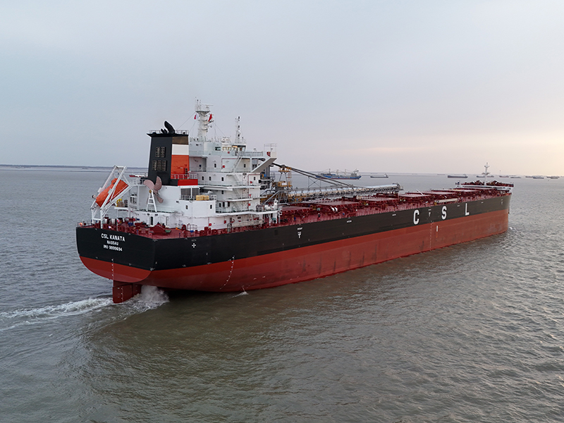 YAMICがカナダ船主向けに建造した80,000DWT型 セルフアンローダー船「CSL KANATA」号を引渡